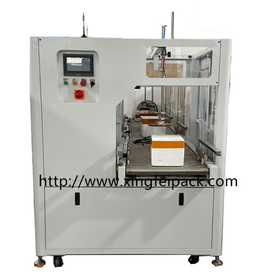 Production-line Type Foam Box Sealing Machine, a semi-automatic equipment, uses common tape or transparent tape to seal the standard size foam box or special boxes.